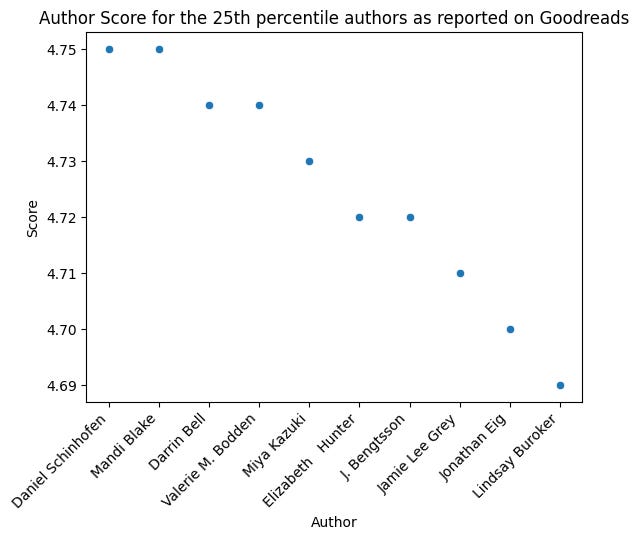25th Percentile: Authors with the fewest ratings—a mix of niche or newer authors.