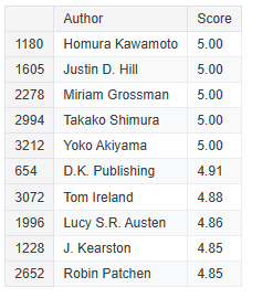 scores = books.groupby('Author')['Score'].mean().reset_index()To fix this, I categorized the data using percentiles: